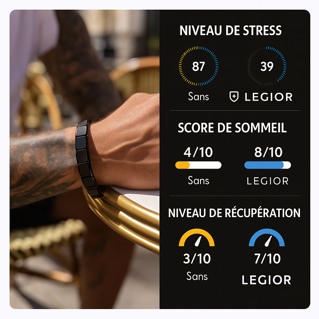 Offrez Legior pendant 30 jours. C'est tout. Portez-le pendant vos réunions, vos entraînements et ces longues journées qui vous épuisaient autrefois. Sentez votre motivation revenir, votre concentration s'aiguiser, votre énergie naturelle renaître. Vous ne le sentez pas ? Remboursement intégral. Sans poser de questions. Juste des résultats ou remboursement.