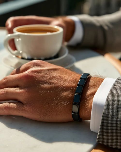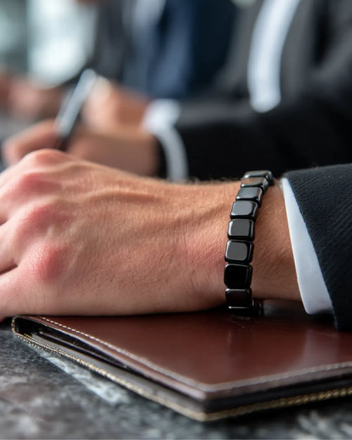 Forgé en hématite magnétique véritable, le Bracelet LEGIOR n’est pas un simple bijou :